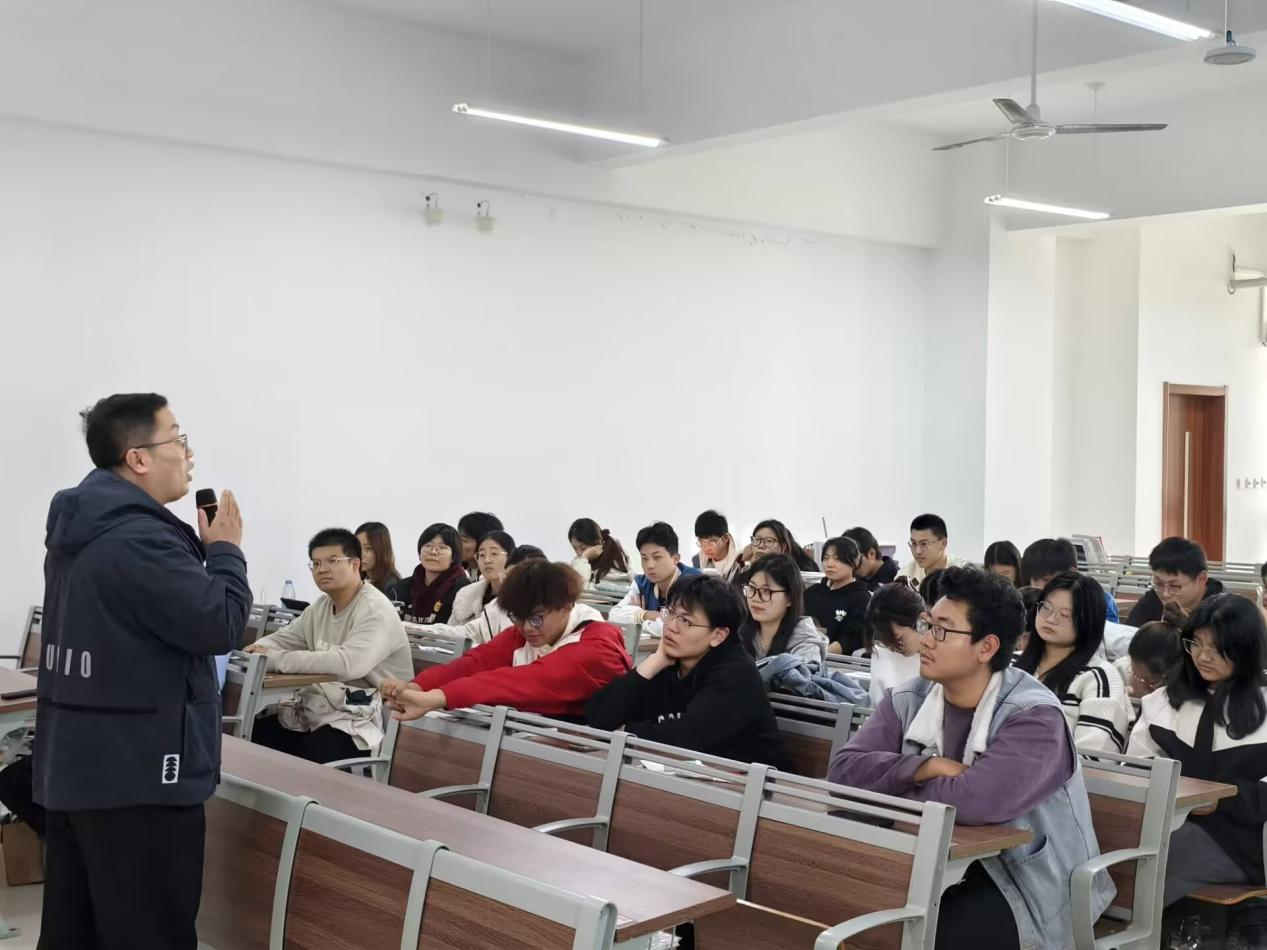 11 月 11 日bat365中文官方网站在增信楼516举办优秀校友专题报告会,邀请优秀校友李泰禹返校做报告,2025届毕业生参加。