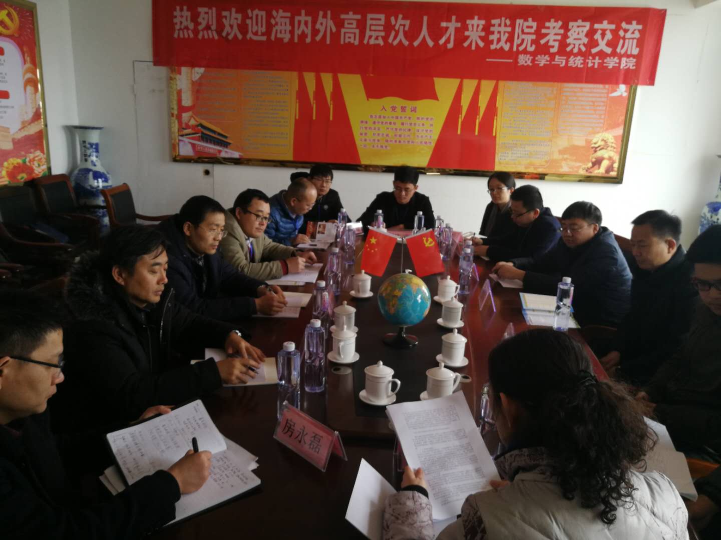 首先,王兵院长就学院的发展、学科建设、科研、人才培养等方面进行了介绍。然后进入了自由交流环节,来自安徽师范大学的申广君,南京信息工程大学的刘长迎,东北大学的马世美等博士就自己的学术研究背景、课题方向,下一步的打算等情况进行了充分的交流,现场的气氛非常热烈,掌声不断。
