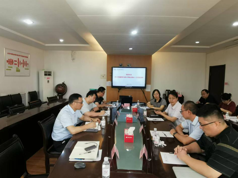 为落实山东省教育厅2024年“3+2”职业院校与本科高校对口贯通分段培养通知精神,切实做好“3+2”贯通培养改革试点工作,7月31日,bat365中文官方网站院长吕长青带领金融工程专业负责人王频等一行4人赴山东外贸职业学院参加对口贯通分段培养试点专业人才培养方案及专业建设座谈会。山东外贸职业学院院长刘珉、财会金融系主任卢吉强、金融服务与管理专业带头人许云及财会金融系各专业专业带头人、骨干教师接待吕院长一行并一同参加本次座谈会。