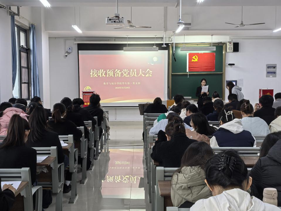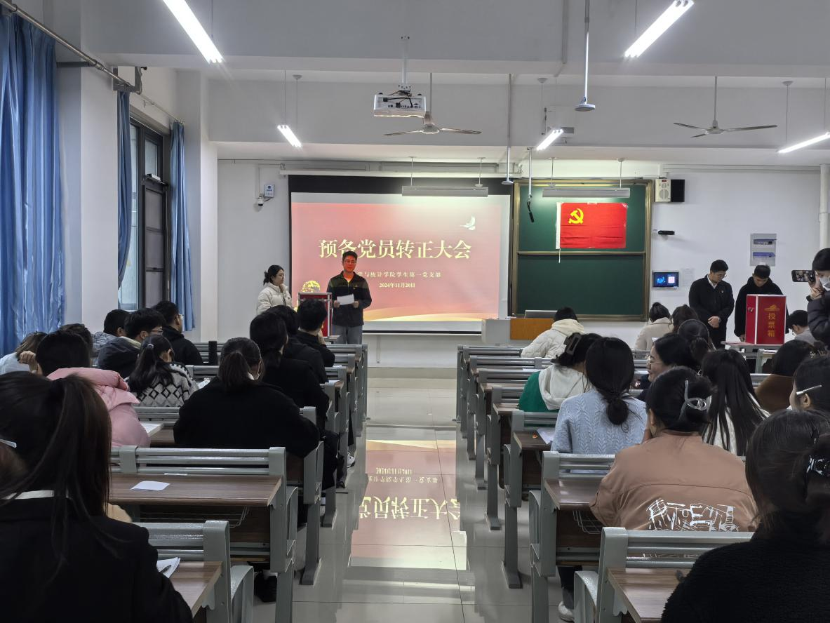 根据学校党委组织部党员发展相关工作安排,bat365中文官方网站学生第一党支部、学生第二党支部于2024年11月20日在增信楼516教室先后召开接收预备党员大会与转正大会。学生党支部全体党员、拟接收预备党员入党介绍人、拟转正党员入党介绍人先后参加会议,各支部书记主持会议。