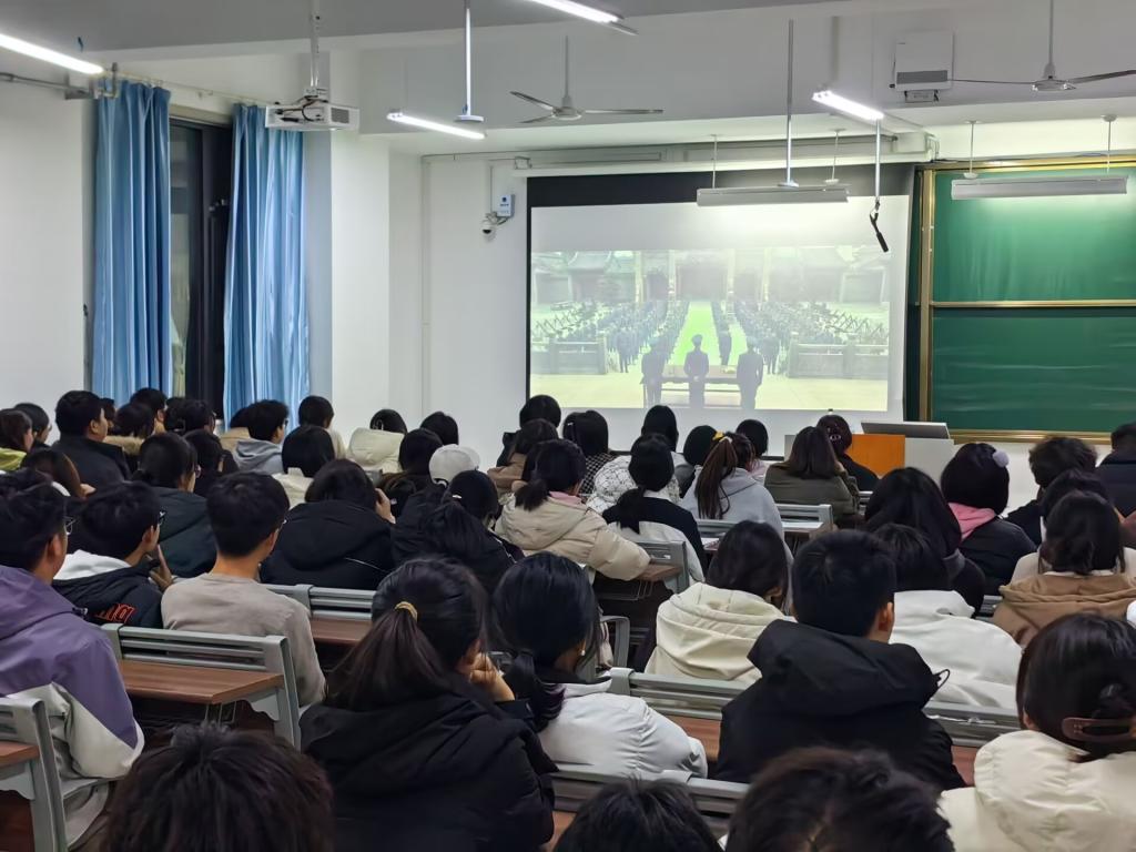为贯彻落实习近平总书记在党的二十大报告中提出的“深化全民国防教育”的重要指示要求,12月6日,数学与统计学院组织学生党员、退役士兵和学生代表等200余人集体观看红色教育影片《一生交给党》,在光影中回顾党的光辉历程,感悟革命先辈的崇高精神。