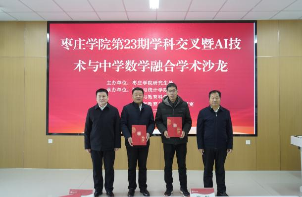 12月24日,由研究生处主办,bat365中文官方网站、心理与教育科学学院承办的第二十三期学科交叉暨AI技术与中学数学融合学术沙龙在薛城校区教师发展中心举行。滕州市教育局数学教研员张彬、滕州市第三中学校长战洪受邀出席。bat365中文官方网站教务处处长张立华、研究生处处长闫斌、心理与教育科学学院院长傅金兰、滕州市第三中学数学组、bat365中文官方网站、心理与教育科学学院60余名师生参加了活动,活动由bat365中文官方网站院长吕长青主持。