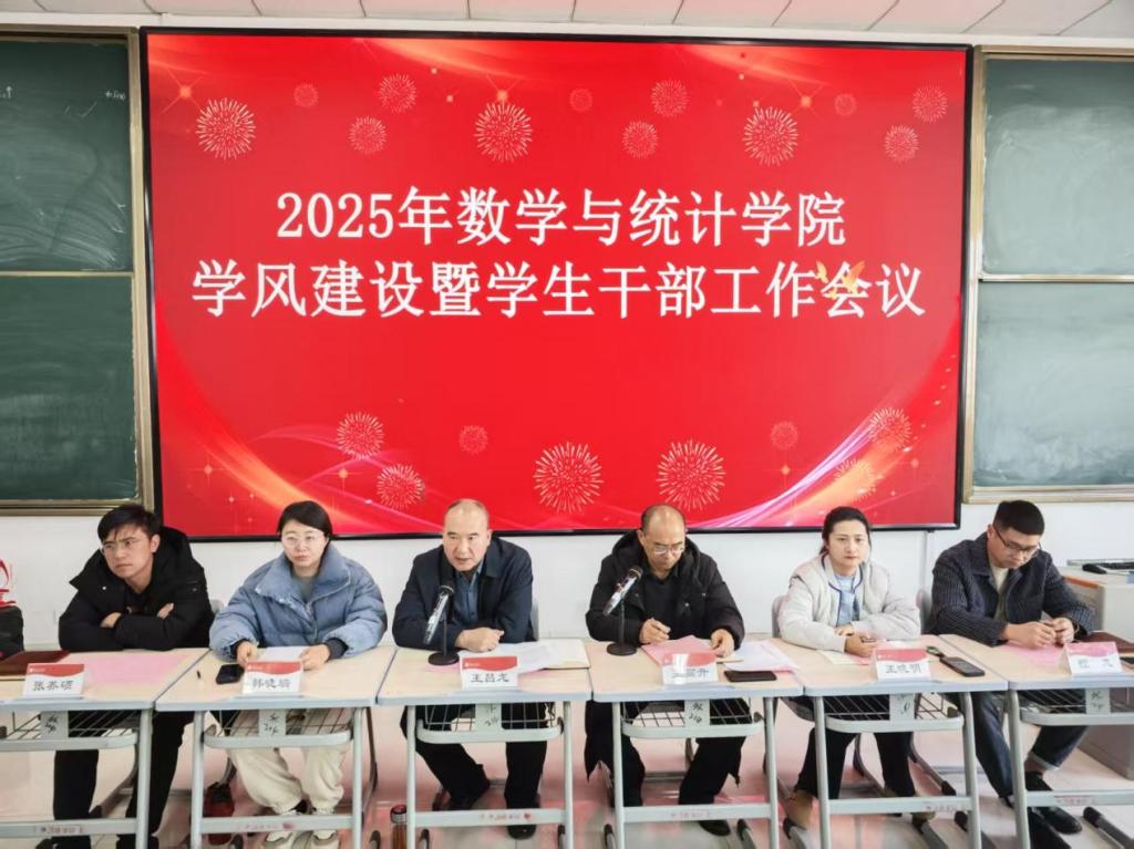 王昌龙对上学期学风建设和学生会工作开展情况进行了点评。他强调,学风建设事关学院发展和人才培养质量,全院上下还要继续加强学风建设工作。学生干部要发挥在学风建设中的重要作用,不仅自身要起到表率作用,还要带领所在部门、班级抓好觉建设。他提出三点要求:一是要进一步总结经验,完善制度,优化管理模式,提高管理效能;二是全体学生干部要以身作则,做学风建设的引领者;三是加强学习和总结,创新工作方法,提高管理水平,为建设和美高精的数统学院做出贡献。
