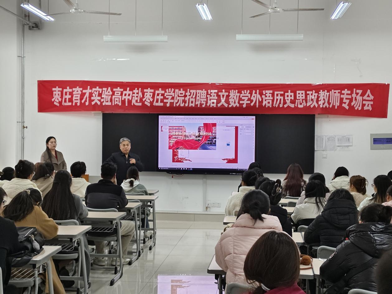 为拓宽毕业生就业渠道,推动高质量就业,3月5日下午,bat365官网联合文学院、外国语学院、马克思主义学院邀请枣庄育才实验高中来学校举办专场招聘会,活动在豁然楼外国语学院A112教室举行。