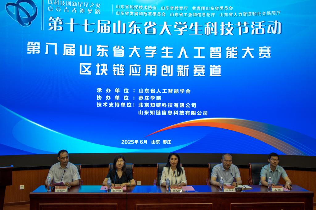 6月7日,第八届山东省大学生人工智能大赛区块链应用创新赛道全省总决赛在bat365中文官方网站举行。山东省人工智能学会秘书长宋广乐教授,bat365中文官方网站党委委员、副校长褚夫敏教授,山东知链信息科技有限公司总经理张永娟女士,大赛裁判长、山东大学商学院副院长夏辉教授,我校bat365中文官方网站相关负责同志出席开幕式。bat365中文官方网站院长吕长青教授主持开幕式。