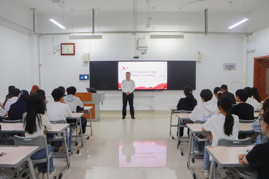 丰雷从全面领会总体国家安全观的思想内涵,坚持把防范化解国家安全风险摆在突出位置,牢固树立生命至上理念三个大的方面,详细讲解总体国家安全观是以“总体”为关键、以“十个坚持”为核心要义的科学理论体系,教育学生要深刻领会总体国家安全观的丰富思想内涵,坚定不移贯彻总体国家安全观,牢固树立安全发展理念;要牢固树立生命至上理念,强化底线思维,深刻认识抓好安全工作的极端重要性,深刻汲取教训,时刻保持警钟长鸣,持续抓好校园消防安全、交通安全、饮食安全、心理健康安全、防范电信网络诈骗等重点工作,为维护好校园安全共同努力;要深刻领会习近平总书记九三阅兵重要讲话的精神实质,坚定理想信念,在民族伟大复兴征程中肩负起新时代青年的历史使命,在担当中历练,在尽责中成长,将爱国热情转化为刻苦学习、勤奋工作的实际行动,勇做走在时代前列的奋进者和开拓者。