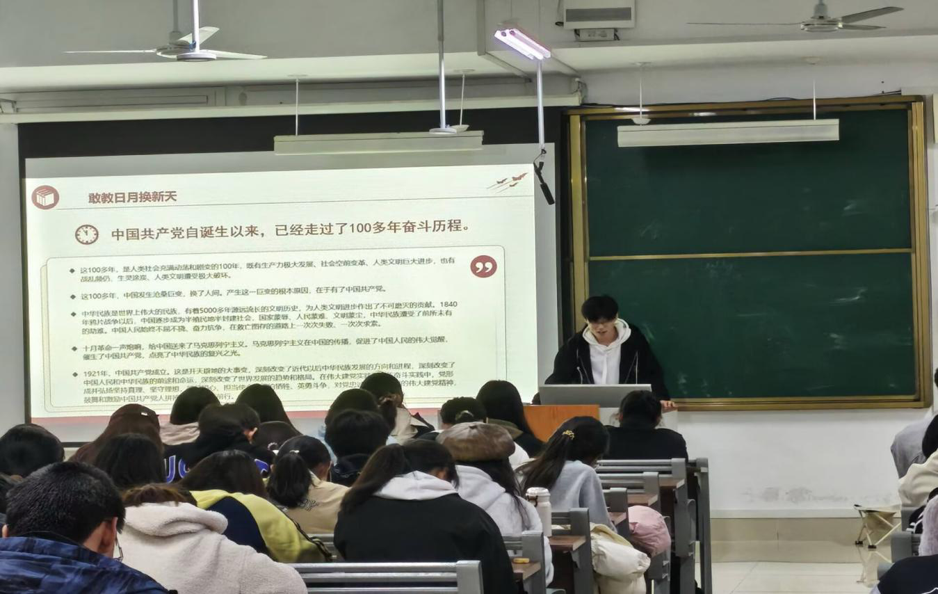 学院团委书记以《重温百年团史 勇担青春使命》为题主讲团课,从百年团史发展脉络、团史学习对青年成长的价值、新时代团员传承红色基因的实践路径三个维度展开讲解,号召团员青年厚植爱党爱国爱团情怀,将个人成长融入时代大局,为学院建设和国家发展贡献青春力量。