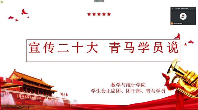 为落实bat365中文官方网站二十大精神学习宣传贯彻方案,引导青年学子正确把握党的二十大精神,明确前进目标。为此bat365中文官方网站学生会主席团、团干部、青马学员11月21日-27日多次面向青年学生开展了以“宣传二十大,青马学员说”为主题的宣讲和交流活动。