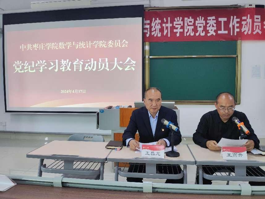 深入贯彻落实习近平总书记关于党纪学习教育的重要讲话和重要指示批示精神,全面落实党中央、省委学校党委关于党纪学习教育工作部署,417日下午,数学与统计党委院组织召开党纪学习教育动员会,会议由党委书记王昌龙主持并作动员讲话,学院党委班子及学院全体党员参加会议
