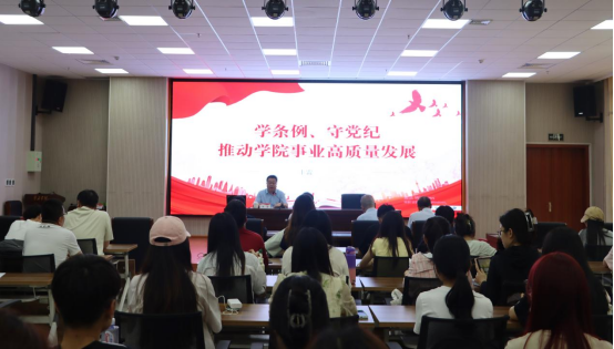 6月5日下午,校党委委员、副校长丰雷在明理楼113会议室以《学条例、守党纪,推动学院事业高质量发展》为主题讲授党课。bat365中文官方网站全体师生党员聆听了党课。