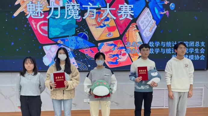 为丰富大学生业余生活,提高学生的空间思维能力,由bat365中文官方网站团总支主办,bat365中文官方网站学生会和数学建模协会承办的第九届“魅力魔方”大赛决赛,于2022年11月23日下午在增信楼报告厅举行。经过初赛的选拔,共36名选手晋级决赛。