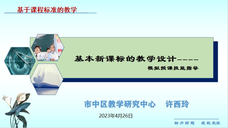 报告主题为《基本新课标的教学设计---模拟授课技能指导》,许西玲教授从“教学设计的基本依据”、“教学设计的基本环节”、“课件制作的基本要点”三个方面全面而细致地介绍了如何设计好一堂数学课。许教授首先指出《全日制义务教育课程标准(2022年版)》是教学设计的基本依据,培养核心素养又是具体的设计要求,同时教学设计还要考虑学生的学习特点。随后,在教学设计的具体环节中,许教授首先介绍如何制定合理的学习目标,又从教学过程的几个环节分别介绍如何进行教学设计以及相关要点,并辅以大量的案例介绍。最后,许教授又介绍了课件制作的基本要点、注意点以及书写规范。