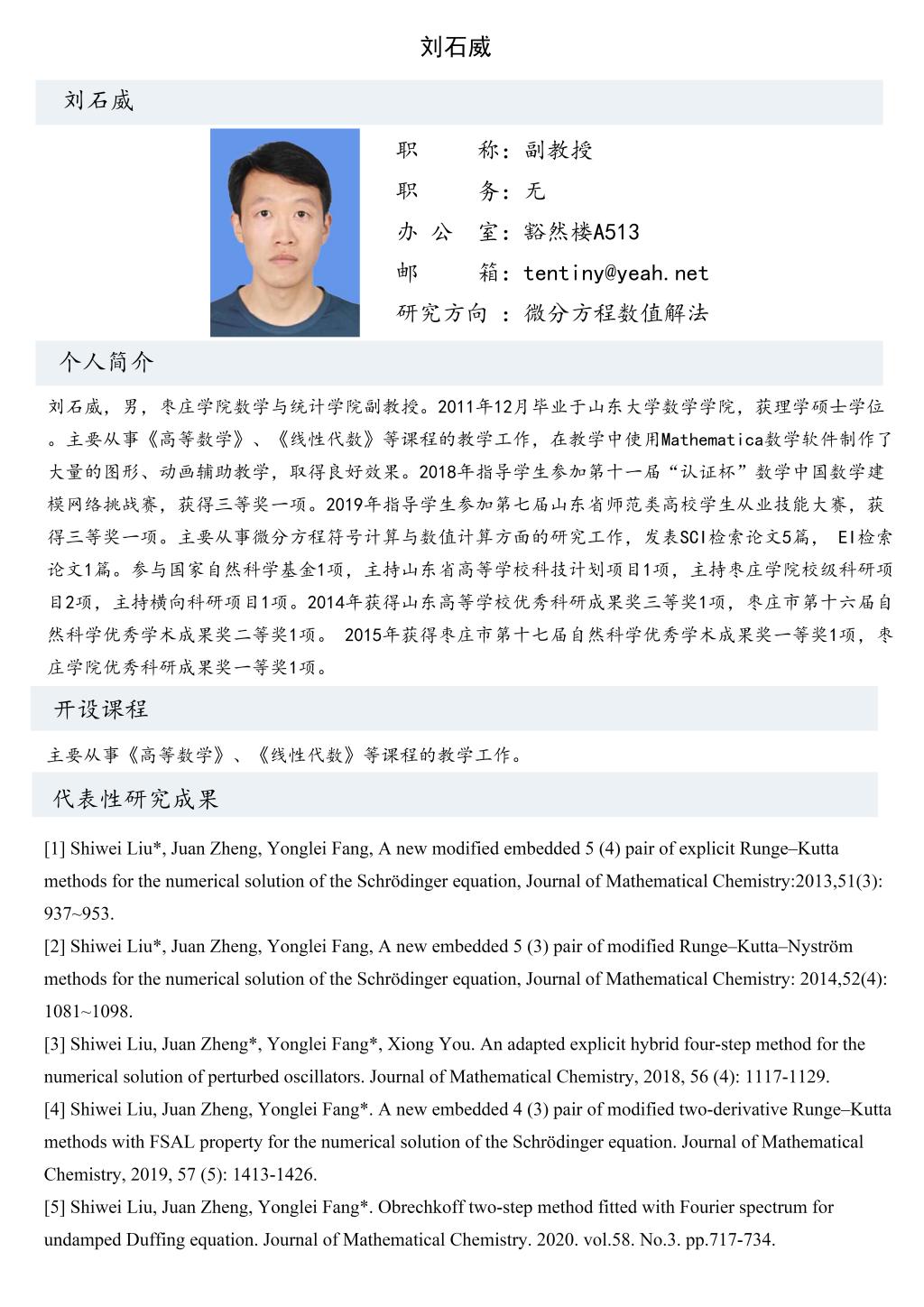刘石威老师个人简介