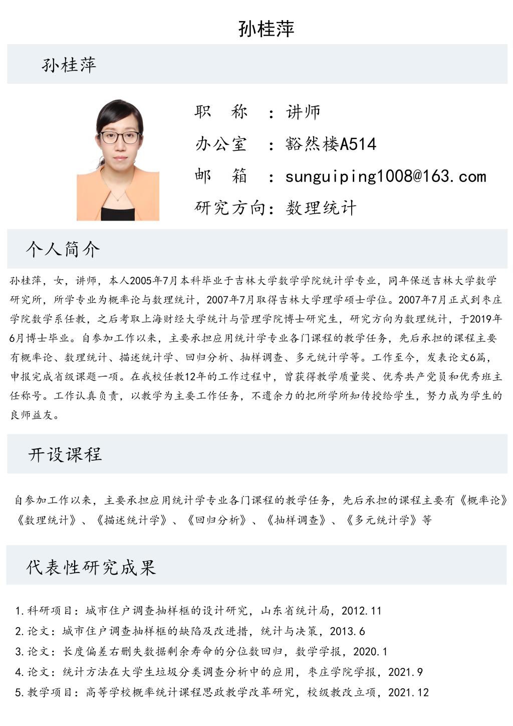 孙桂萍老师个人简介