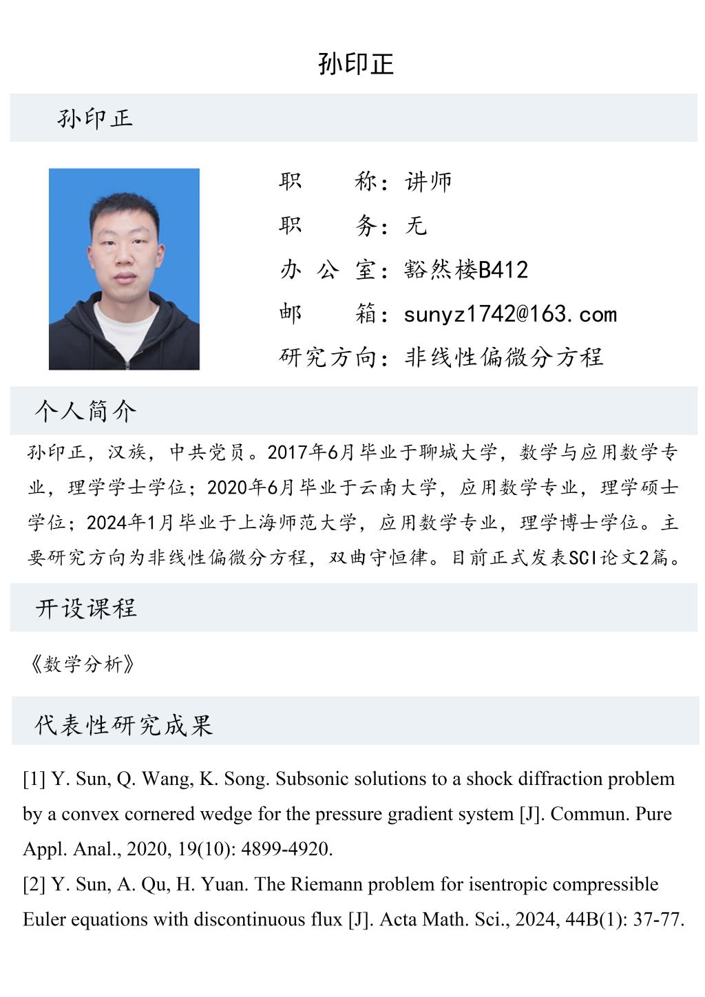 孙印正老师个人简历