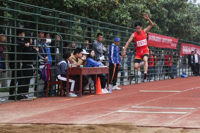 2018级王旭升同学参加甲组跳远决赛,最终取得第五名的好成绩