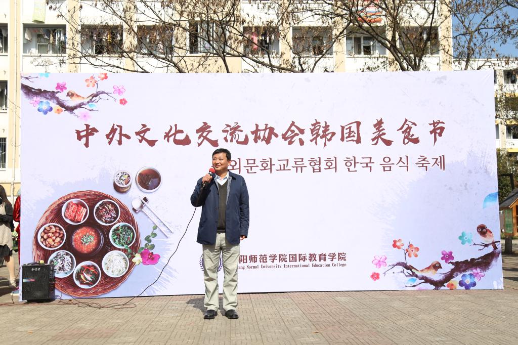 10月31日,由beat365官方网站中外文化交流协会主办韩国美食节活动在八餐小广场举行。beat365官方网站党委书记张震、院长李保红、副院长何英干、党委副书记姚新春、社团指导老师陈璐及全体教师出席本次活动。