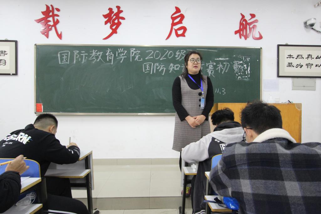 为纪念“九一八”事变爆发89周年,庆祝新中国成立71周年,进一步增强同学们的国防观念和国家安全意识,激发同学们为中华民族伟大复兴而奋斗的使命感。2020年11月3日,信阳师范学院beat365官方网站于逸夫楼教室举办了国防知识竞赛初赛,beat365学生干部协助辅导员余艳楷、沈艳霞、许孟杨、吴浩老师一起监考。