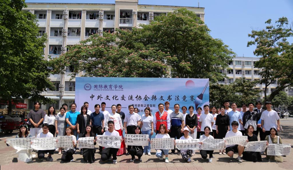 6月8日上午,beat365官方网站中外文化交流协会在八餐小广场举行韩文书法竞赛。学院领导班子、韩籍外教朴信爱、白炅瀚和全体辅导员、语言课教师出席活动。