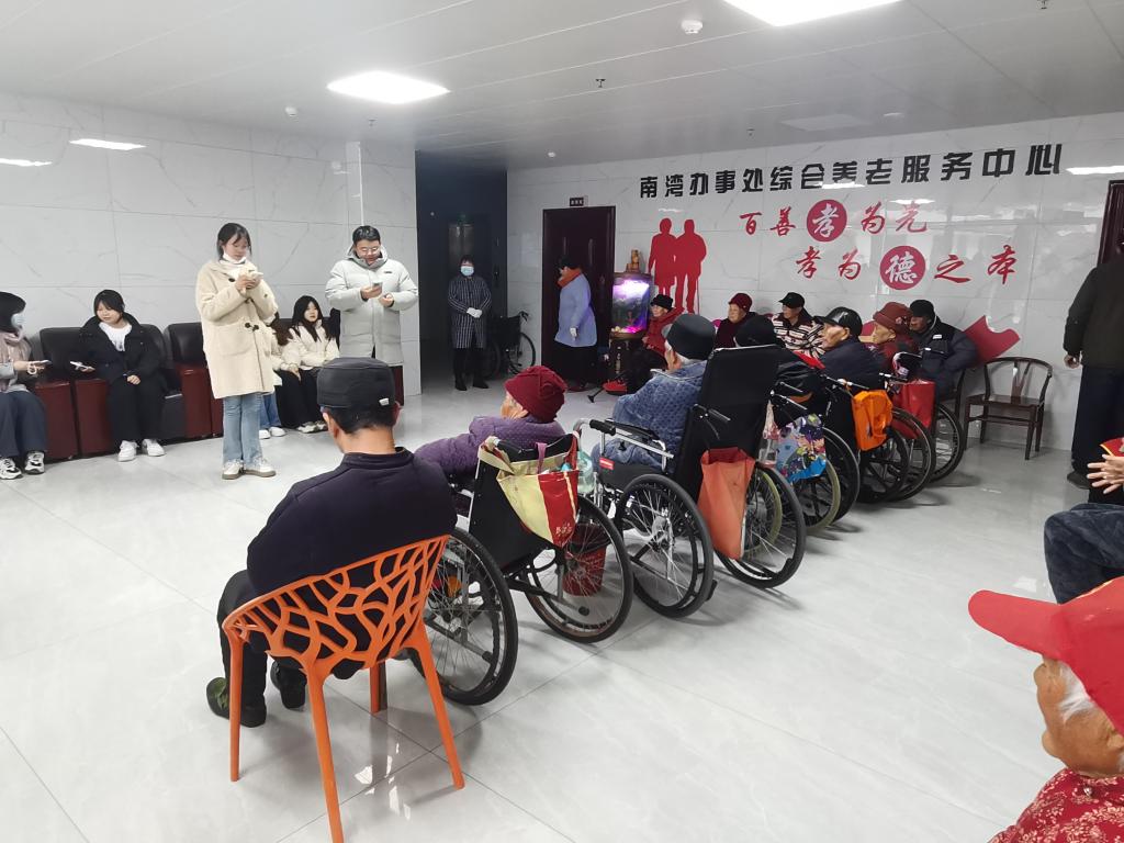 12月16日上午,beat365官方网站组织优秀学生志愿者赴浉河区福星聚养老院开展了“岁月留痕 情暖寒冬”敬老活动,为老人们献爱心、送温暖。