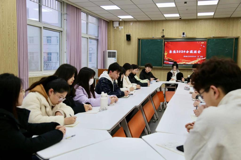 3月11日,beat365官方网站组织学生会干部成员于逸夫楼201教室集中交流深入学习“两会”相关内容,体会“两会”精神。