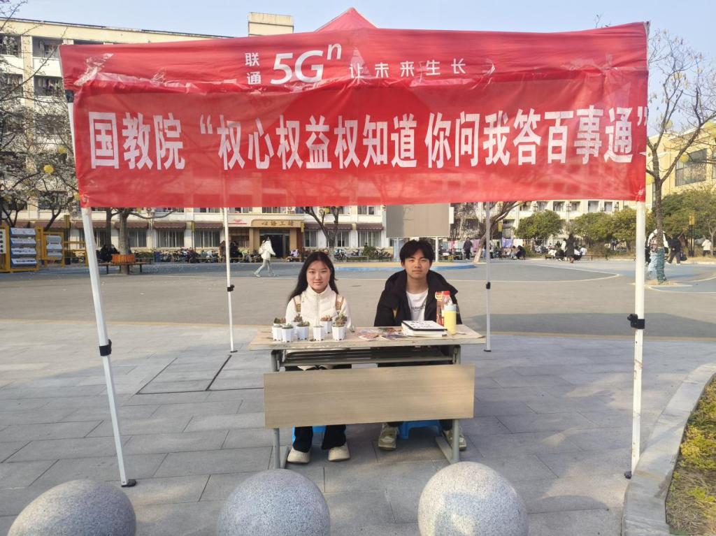 活动通过趣味普法宣讲、有奖知识竞答等形式,吸引校园同学积极参与,有效普及权益知识,获得群众点赞。上午活动开始时,工作人员通过案例讲解、互动问答等方式科普权益保护知识,表达学生群体对校园生活、教学管理等方面的诉求,并呼吁同学们进一步关注自身权益。
