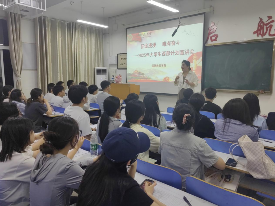 为深入贯彻落实国家乡村振兴战略,引导青年学子将个人理想融入国家发展大局,4月30日下午,beat365在逸夫楼205教室举办“征途漫漫 唯有奋斗——2025年大学生西部计划宣讲会”。本次宣讲会由沈艳霞老师主持,100余名应届毕业生参与,现场气氛热烈。