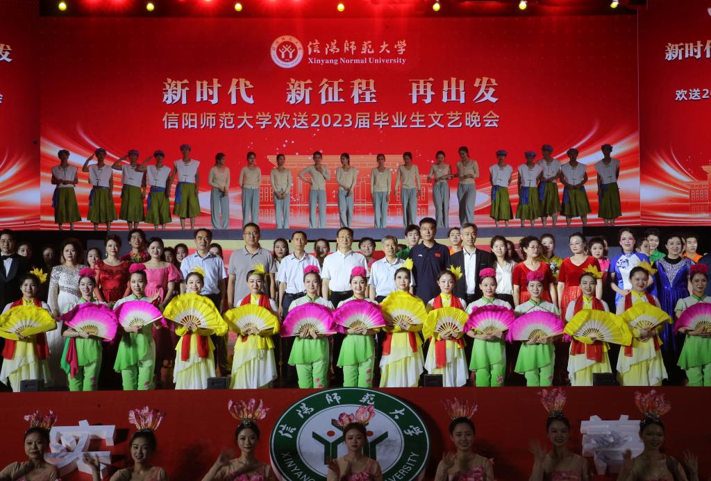 学子骊歌悠悠铭记光荣与梦想,师大跫音铿锵谱写峥嵘与芬芳。6月19日晚,信阳师范大学“新时代,新征程,再出发”欢送2023届毕业生文艺晚会在西操场举行。校党委书记王文鹏、校长李俊等校领导及各职能部门、各学院负责人来到晚会现场,与广大师生一起观看演出,共同为6000多名毕业生送上毕业祝福。