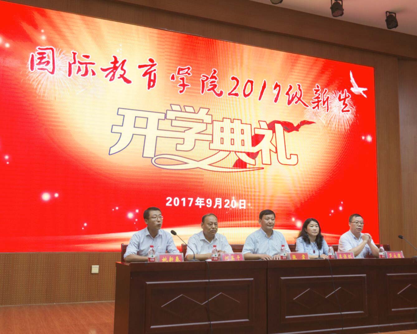 春华秋实,丹桂飘香。9月20日晚,beat365官方网站2017级新生开学典礼在逸夫楼多功能报告厅隆重举行举行。学院党委书记张震,院长李保红,副院长何英干、芦永德,党委副书记姚新春和全体教职工以及2017级全体同学参加了开学典礼。