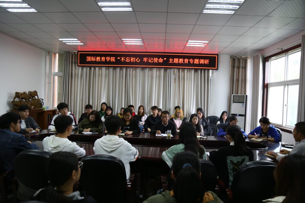 10月15日上午,beat365官方网站党委副书记姚新春在逸夫楼B座302会议室召开“不忘初心、牢记使命”主题教育专题调研会。专职辅导员沈艳霞、竹梅、许孟杨,社团主要负责人以及学生骨干等40余名师生代表参加了会议。