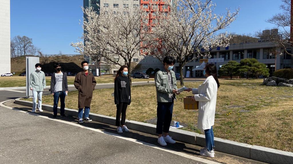 2月中旬之后,疫情在全世界蔓延,韩国的新冠疫情日趋严重。在这个特殊时期,学院党委立即成立海外留学生疫情防控工作小组,利用互联网工具搭建海外网格,宣传国内的防控经验、举措,制定科学有效的健康防护措施,及时掌握海外留学生的身体健康状况以及韩国的疫情形势,为守护每一位海外学子的身体健康尽心尽责。3月中旬,由学院党委筹集的防护设备、口罩等物资运达韩国,为海外学子提振抗疫信心,传递温暖。