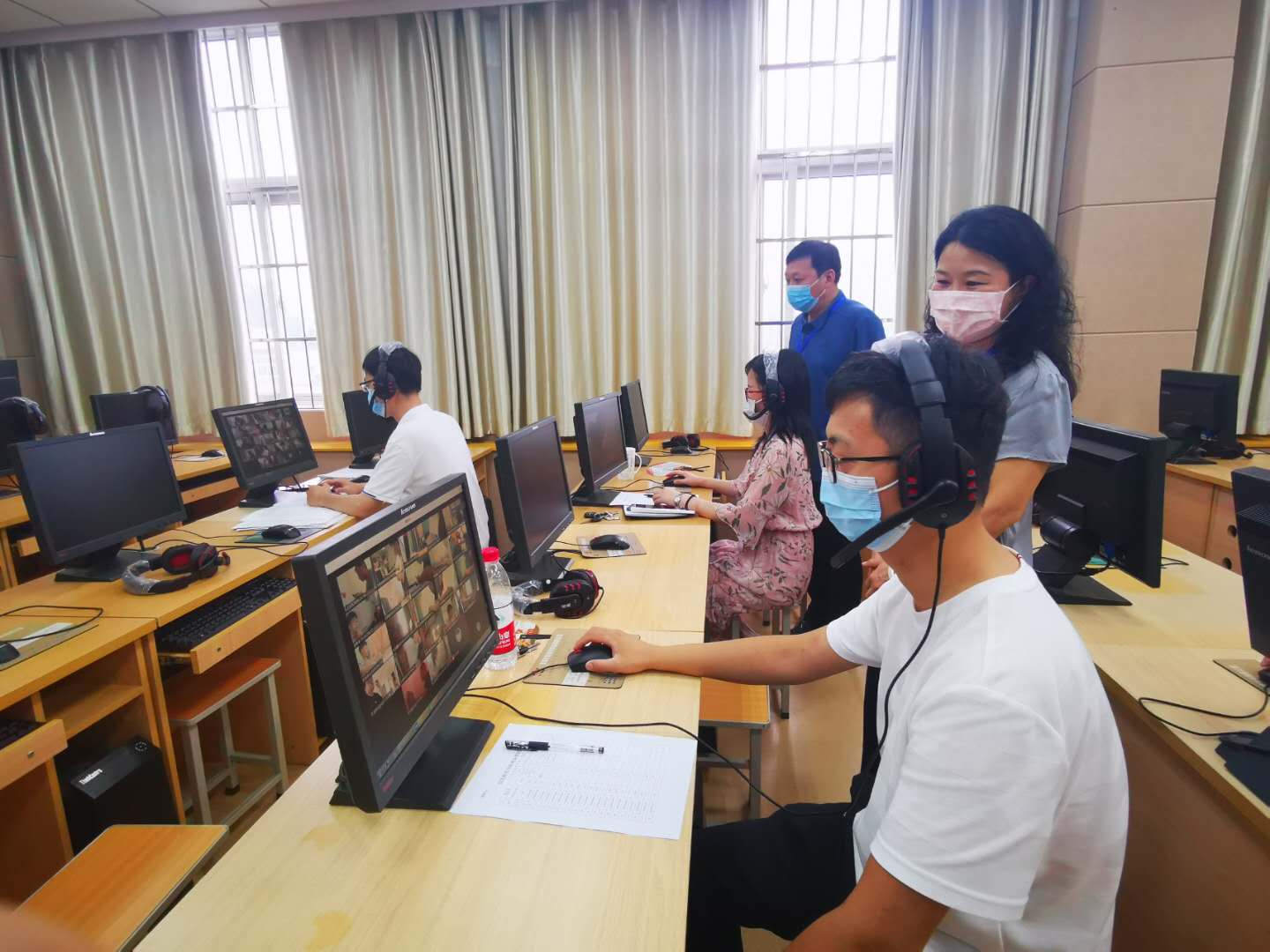 国际教育学院2019-2020学年第二学期期末线上考试于6月29起全面展开。学院领导对期末考试考务工作高度重视,自6月29日起,beat365党政领导班子及教学部相关同志分期分批到逸夫楼301语音实验室对期末考试线上集中监考工作进行巡视。