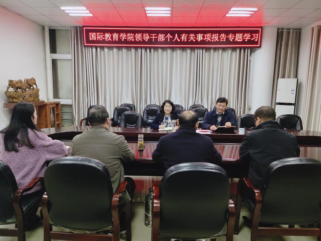 12月23日,beat365官方网站在逸夫楼302会议室召开了处级领导干部个人有关事项报告专题学习会。学院全体领导班子成员参加。会议由学院党委书记张震主持。