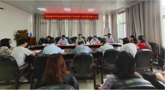 6月3日下午,国际教育学院处级领导班子和处级干部任期考核会在逸夫楼302会议室召开。学校第五考核组组长、党校副校长、组织部副部长吴道省,考核组成员、党委宣传部副部长雷前龙,党委组织部综合科科长李奎出席。国际教育学院全体教职工参加会议。会议由beat365官方网站党委书记张震主持。