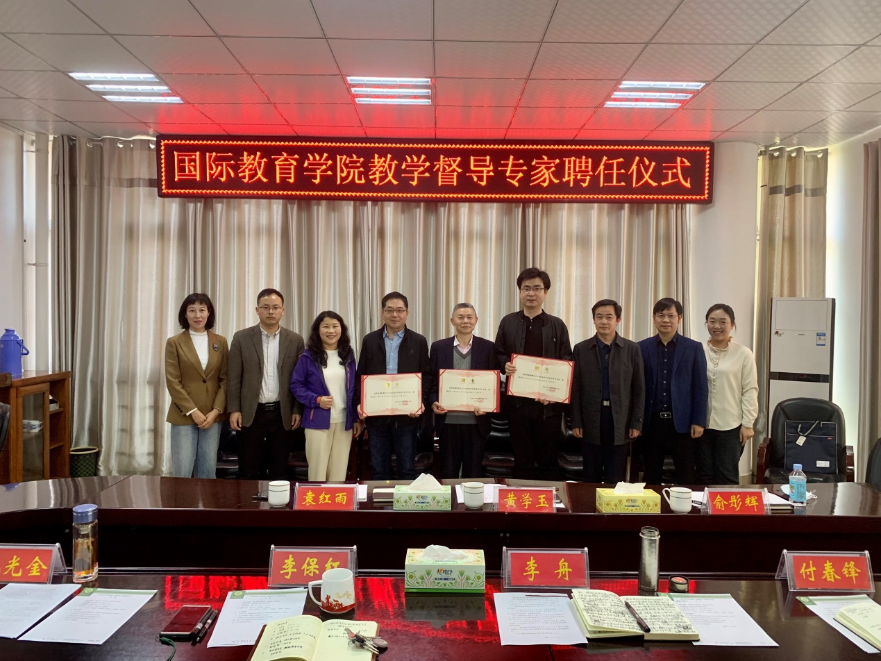 3月9日,beat365第二届教学督导专家聘任仪式在逸夫楼302会议室举行。院党委书记李舟、院长李保红和学院班子成员、教学秘书等参加。学院新一届督导专家黄学玉、袁红雨、俞彤晖出席了聘任仪式。
