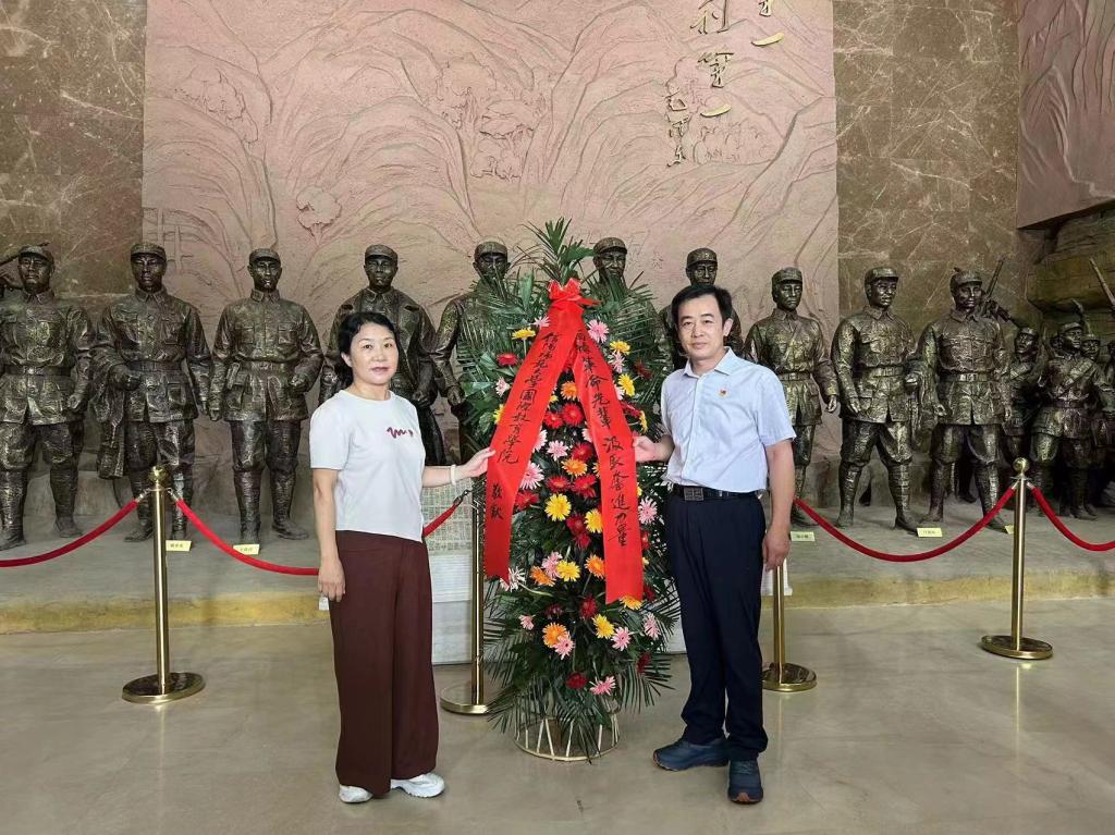 重温入党誓词,坚定历史自信。在英雄人物铜像前,院党委书记李舟、院长李保红为争取人民解放奉献牺牲的老一辈无产阶级革命家敬献花篮,全体人员庄严肃立,向革命烈士鞠躬默哀,随后面向党旗庄严宣誓,重温入党誓词,体悟习近平总书记关于“不能忘记红色政权是怎么来的、新中国是怎么来的、今天的幸福生活是怎么来的”重要讲话精神,进一步淬炼理想信念,坚定历史自信,增强历史主动。