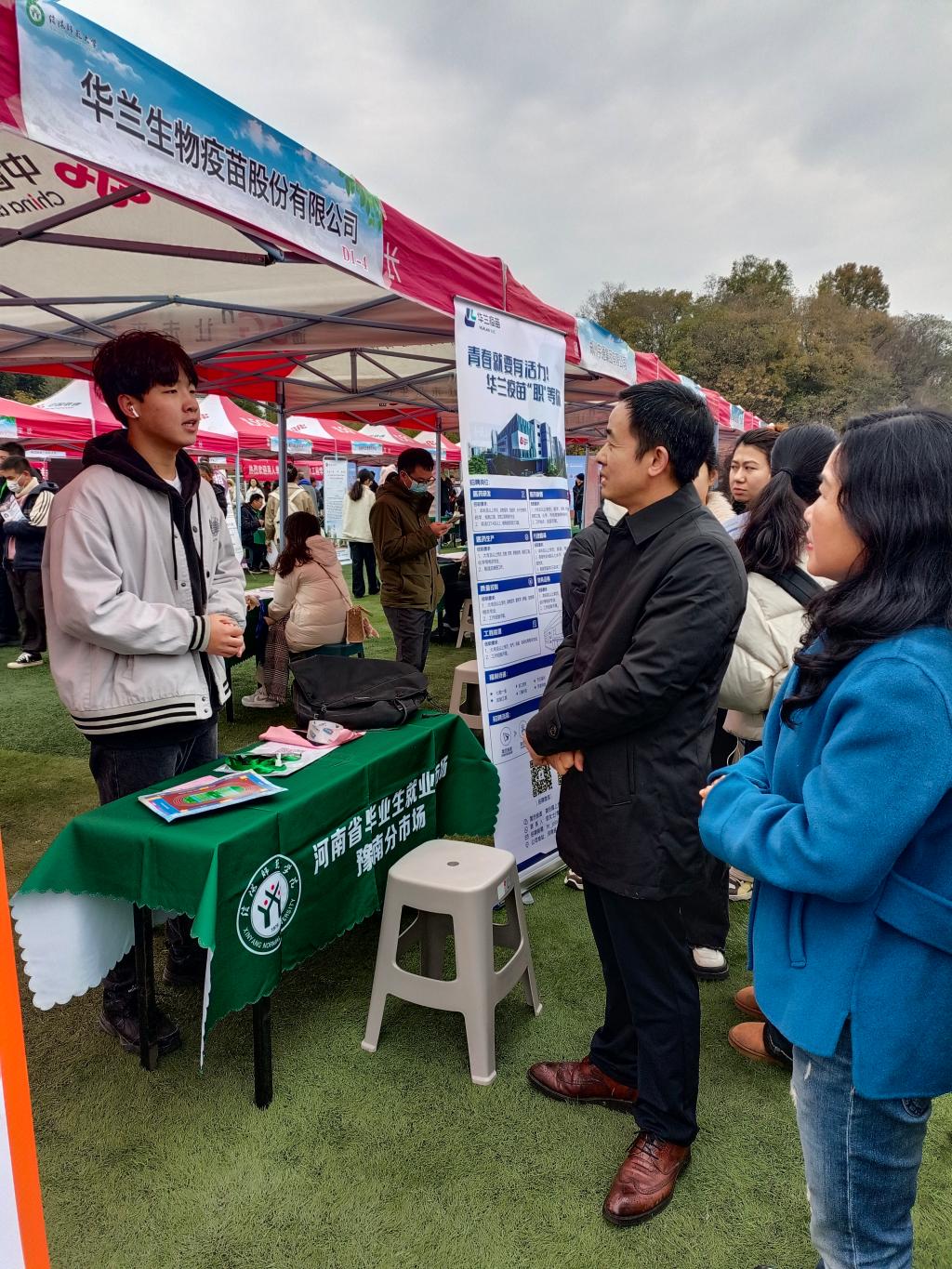 11月25日,河南省毕业生就业市场豫南分市场暨信阳师范大学2024届毕业生冬季双向选择洽谈会在我校西田径场举行。院党委书记李舟、院长李保红、党委副书记付春锋、副院长姚光金、马晓欢,就业工作秘书王欣及毕业班辅导员班主任到场参加,同毕业生和用人单位进行沟通交流,详细了解了用人单位招聘岗位信息及毕业生求职应聘情况。