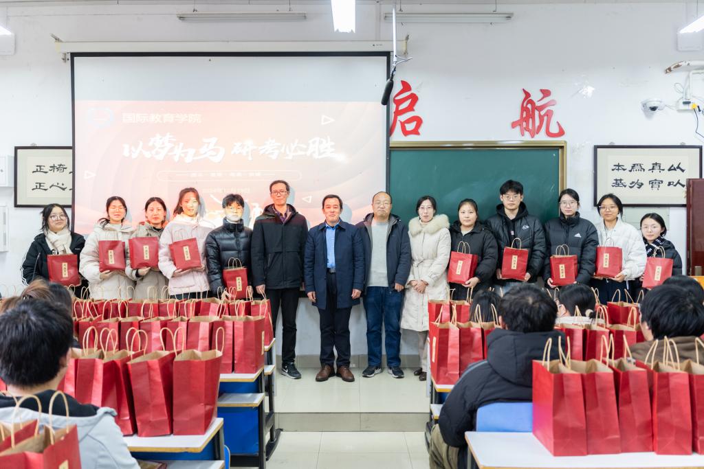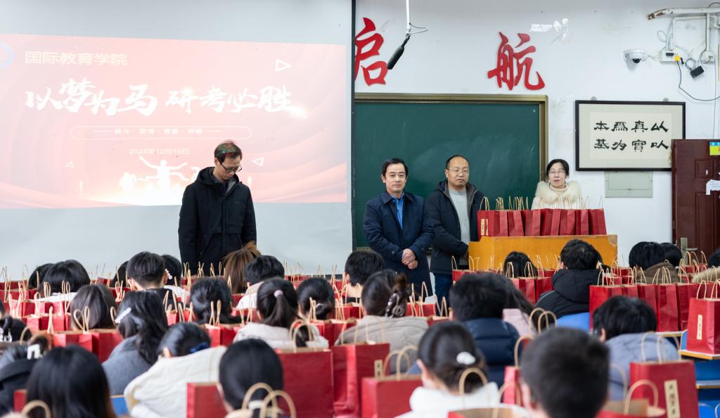寒冬已至,备战已久的考研学子迎来了紧张的冲刺阶段。为了给考研学子送上关心与鼓励,增强其考试信心,12月19日,beat365在逸夫楼209教室举办了“以梦为马,研考必胜”考研送温暖活动。beat365官方网站党委书记李舟、院长刘林超、副书记吕亚波、副院长马晓欢带领2025届毕业班辅导员、班主任现场为考研学子送上考研礼包和温暖祝福。