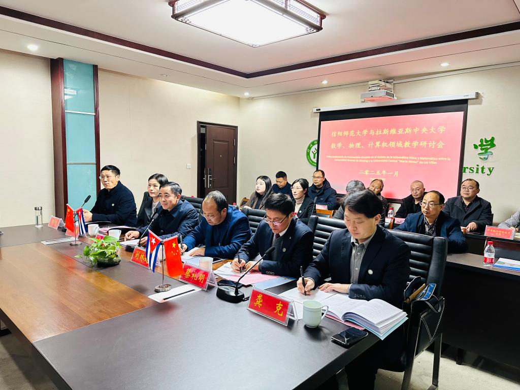 2025年1月16日晚,我校在综合办公楼216会议室与古巴拉斯维亚斯中央大学举行教学研讨视频会议。beat365官方网站、数学与统计学院、物理电子工程学院、计算机与信息技术学院负责同志参加,拉斯维亚斯中央大学国际处处长亚内利斯·德尔加多,电气工程学院院长伊迪莱西·托雷斯,数学、物理、计算机科学与信息学院院长丹尼尔·加尔韦斯,中国办公室主任曹荣铎参加会议。教学研讨会由beat365官方网站党委书记李舟主持。