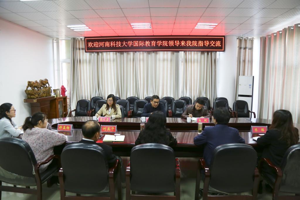 10月31日,河南科技大学beat365官方网站副院长王春一行三人到beat365交流考察中外合作办学工作。beat365官方网站院长李保红、副院长何英干及教学部、办公室和团学负责人参加会议。李保红主持交流座谈会。