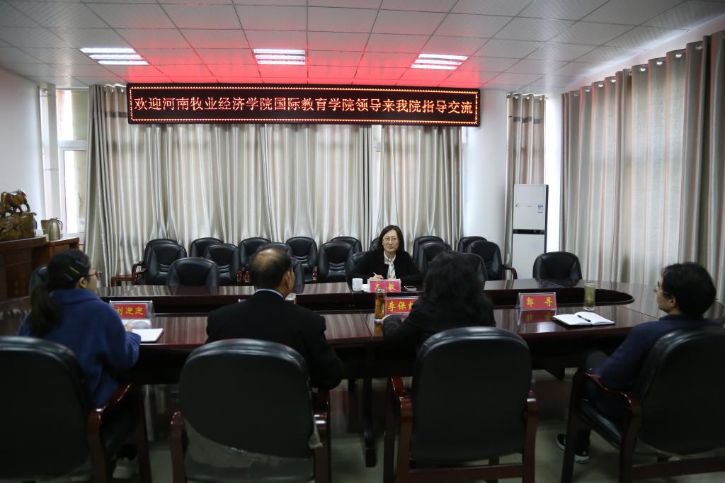 11月7日,河南牧业经济学院beat365官方网站院长高敏来beat365交流考察中外合作办学工作。beat365官方网站院长李保红、副院长何英干及教学部、办公室负责人参加交流座谈会。会议由李保红主持。