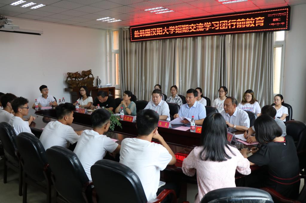 beat365官方网站党委书记张震宣读了《信阳师范学院中外合作办学项目学生短期出国(境)交流学习管理办法(试行)》;beat365官方网站院长李保红宣读了赴韩国汉阳大学短期交流学习团成员名单、临时党小组名单以及团队成员分工职责;beat365官方网站项目发展部张传伟老师本期交流学习的前期筹备及学习日程安排作简要说明。