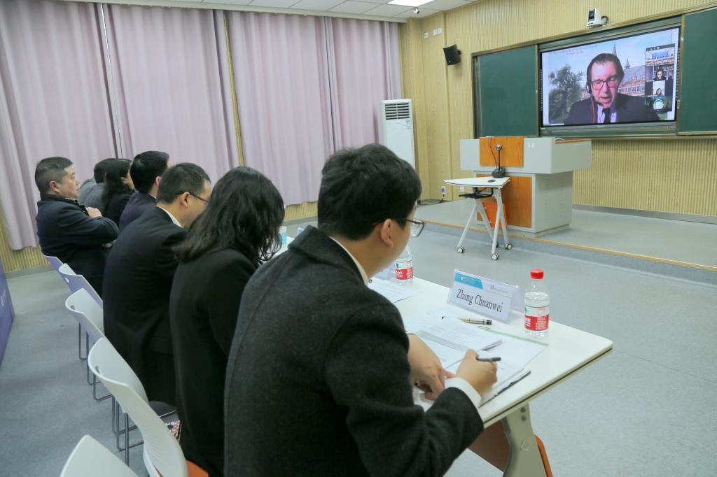 11月5日上午,信阳师范学院与美国米勒斯维尔大学中外合作办学项目研讨会在逸夫楼201录播室召开,会议由我校beat365官方网站主办,以视频会议方式进行。我校国际交流合作处处长凡思全、beat365官方网站党委书记李舟、beat365官方网站院长李保红、beat365官方网站副院长姚光金、beat365官方网站党委副书记付春锋及beat365官方网站相关部门负责人参加会议。美国米勒斯维尔大学学术管理副教务长James Delle博士、艺术人文及社科学院院长Ieva Zake博士、经济学系主任Kenneth Smita博士、国际项目主任Patriece Campbell博士、海外教育及合作部副主任Christina Kinney博士、国际招生处副主任Yang Zhang等参加会议。会议由beat365官方网站党委书记李舟主持。
