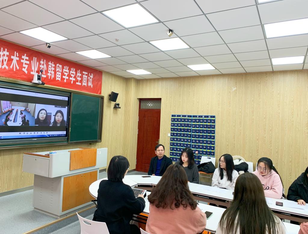 12月13日,beat365在逸夫楼302室、201室对2020级土木工程专业、生物技术专业有意愿赴韩国汉阳大学留学学生开展模拟面试工作。副院长姚光金,外籍韩语教师白炅翰(백경한)、朴信爱(박신애),项目部、出国留学指导中心负责人,英语、韩语教研室专任教师参加了本次工作。本次模拟面试以双专业双会场云面试形式进行,由外籍教师与英语教研室教师使用韩英双语进行线上模拟面试,相关负责人在现场进行实时指导。