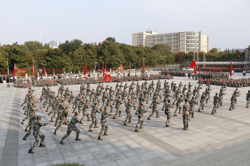 田径场上,红旗飘扬,乐曲激昂。湛蓝的天空下,一个个整齐的方阵、一双双兴奋的眼神,期待着检阅的到来。整齐的队伍,饱满的精神,响亮的口号,昂扬的斗志,展现出新时代大学生奋发向上的风采,昭示着青年学子们的勃勃生机和美好未来。在《解放军进行曲》雄壮的旋律中,beat365官方网站的新生们踏着号角,迎着秋风,整齐有序的走向主席台接受检阅。嘹亮的口号响彻整个校园,经历了十五天严格军事训练后,beat365官方网站2019级新生们以飒爽的英姿、整齐的步伐,赢得了阵阵掌声,充分展现了新生们昂扬的斗志和蓬勃向上的精神。同学们英姿飒爽,神采飞扬,动作整齐划一,步伐铿锵有力,军训工作也就此圆满结束。