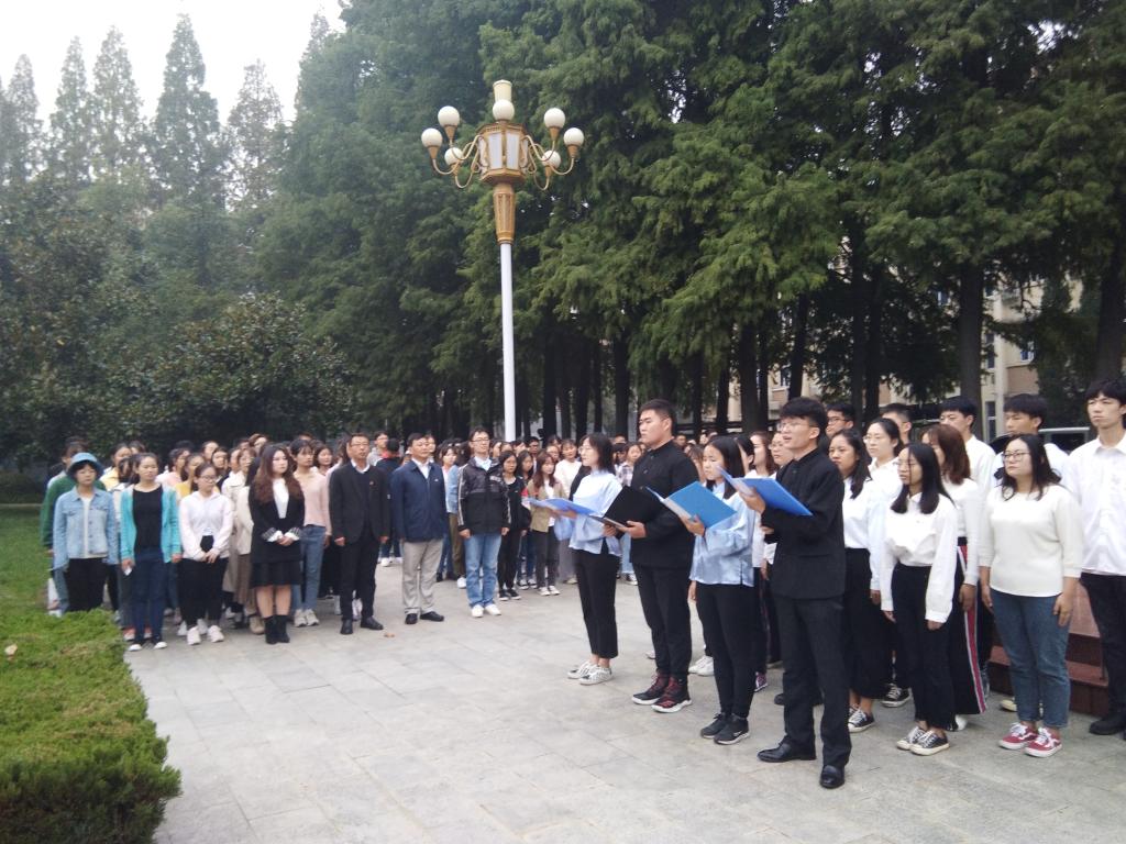 早上6时30分整,明德广场,beat365官方网站师生隆重集会,面对冉冉升起的五星红旗行注目礼。学生代表迟久彦发表了“祖国在我心中”的国旗下演讲,向同学们发出倡议:奋发图强,用实际行动向祖国70周年华诞献礼。“胸怀大志,放飞梦想,严格自律,奋斗拼搏,以学为乐,不断超越,无愧于青春,无愧于未来”!beat365官方网站党委书记张震在讲话中指出,爱国,就是接力奋斗,用奋斗厚重人生底色,用奋斗为祖国繁荣昌盛添砖加瓦,把个人理想与家国理想结合起来,以良好的精神面貌、积极的工作态度、求真务实的作风为祖国70华诞献礼,为“两个一百年”奋斗目标扬帆起航。他勉励大家,在新学期争当身心健康的模范、道德高尚的模范、文化素养和专业技能过硬的模范、富有审美情趣的模范,更要严格要求自己,不负青春,不负韶华。