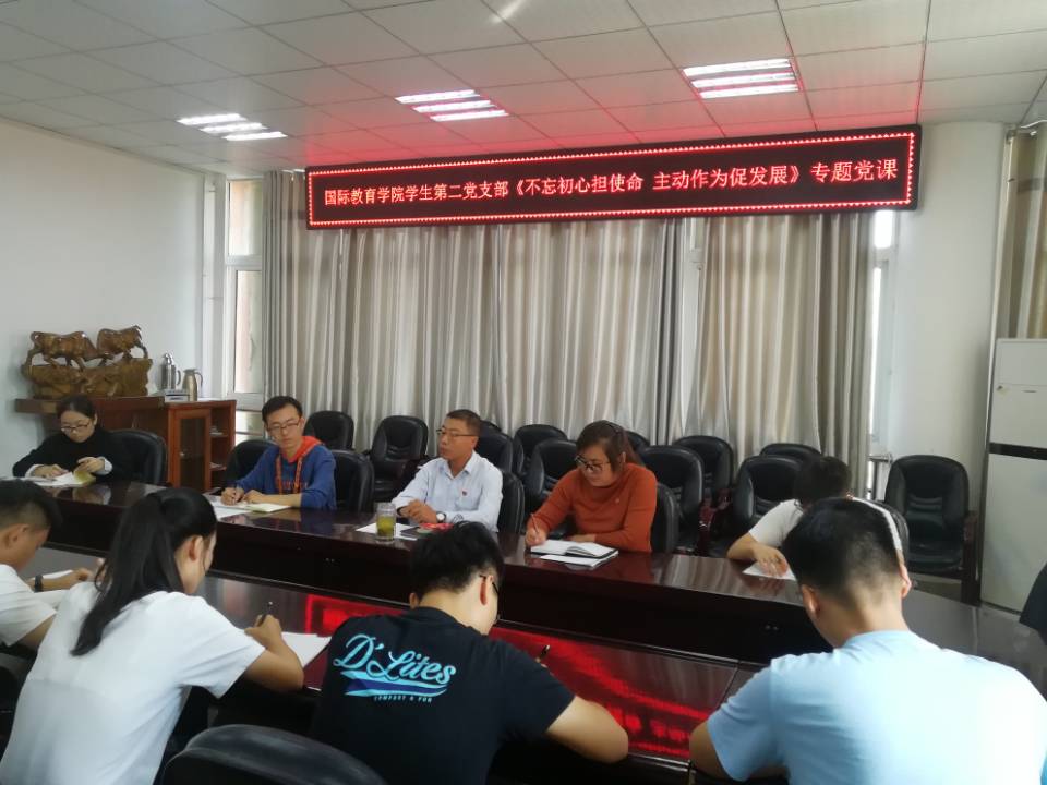 9月29日下午,beat365官方网站党委副书记姚新春在逸夫楼302会议室讲授“不忘初心担使命、主动作为促发展”专题党课,学生第二党支部师生党员聆听了此次党课。