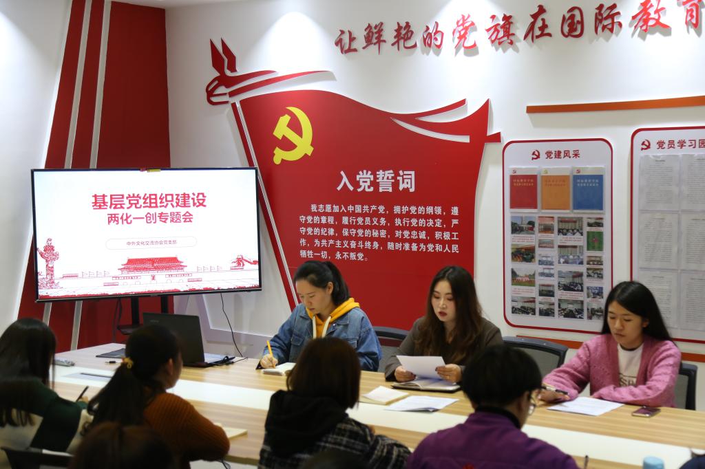 10月25日上午,beat365官方网站中外文化交流协会党支部在逸夫楼202党员之家召开两化一创专题会,全体学生党员、海外党员以及入党积极分子参加会议。会议由支部书记陈璐主持。