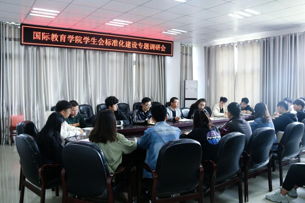 10月29日上午,beat365官方网站党委副书记姚新春在逸夫楼302会议室主持召开学生会标准化建设专题调研会,院学生会主席、副主席、各分管部门部长参加了会议。