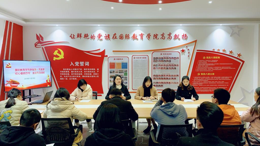 11月18日下午,beat365官方网站学生第一党支部在学院党员之家开展“初心使命四问”主题党日活动。
